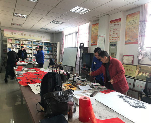 雖然廠外臘盡歲寒,但是職工之家內(nèi)卻春意盎然,通過這樣的活動,旨在把文化藝術送到企業(yè)從而反哺中華文化藝苑,真是一舉多得的善事。既給企業(yè)帶來美好的祝愿,也更加豐富了書畫之源泉。
