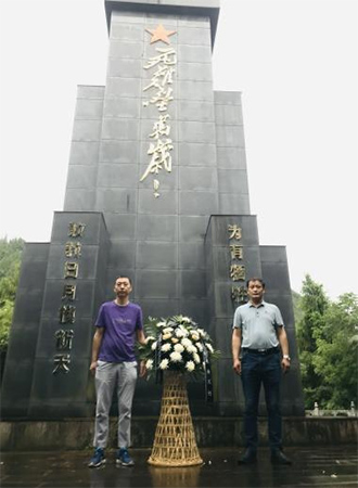全體黨員向烈士紀念碑行鞠躬禮,默哀一分鐘,向烈士敬獻花籃,繞紀念碑一周,全體黨員重溫入黨宣誓。(聶曉玲)