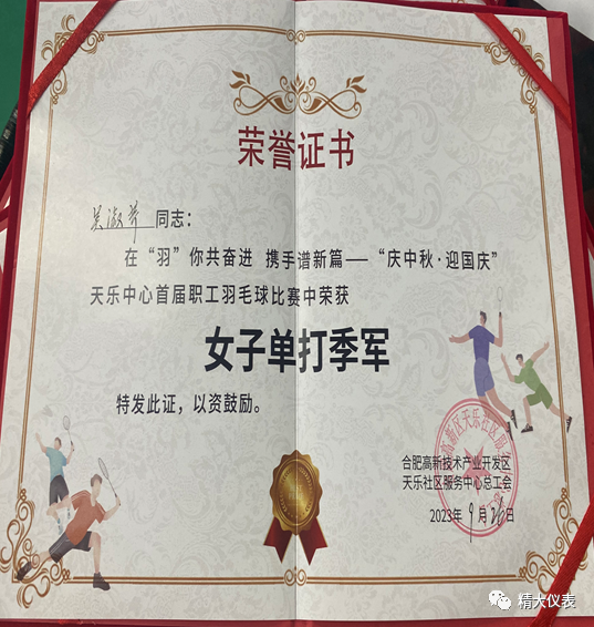 9月26日,我公司職工吳淑芹代表合肥精大儀表股份有限公司參加此項比賽,在她不斷的努力和拼搏下獲得了女子單打季軍,為亞運會以及即將到來的雙節(jié)獻(xiàn)禮!