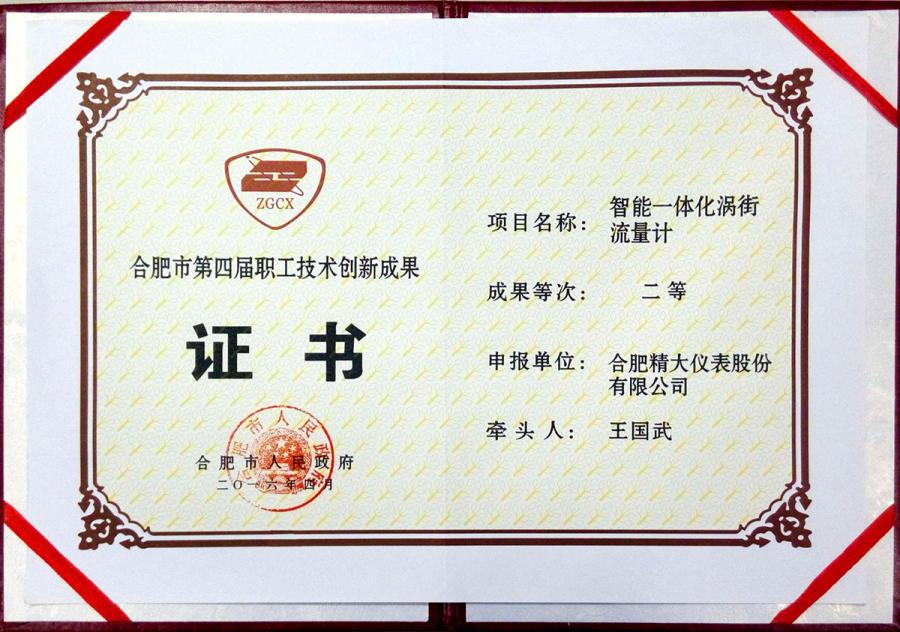 職工技術(shù)創(chuàng)新成果二等獎(jiǎng)證書