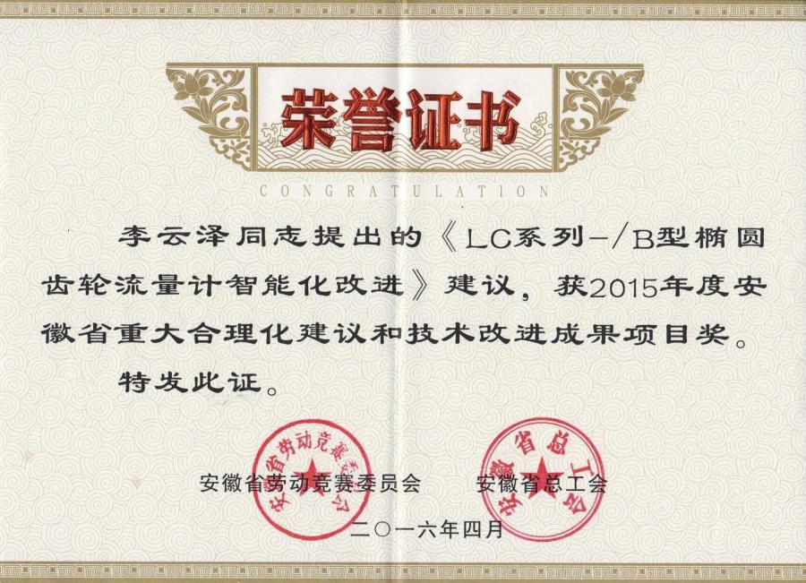 重大合理化建議項(xiàng)目和技術(shù)改進(jìn)成果項(xiàng)目獎(jiǎng)(LC-B型)
